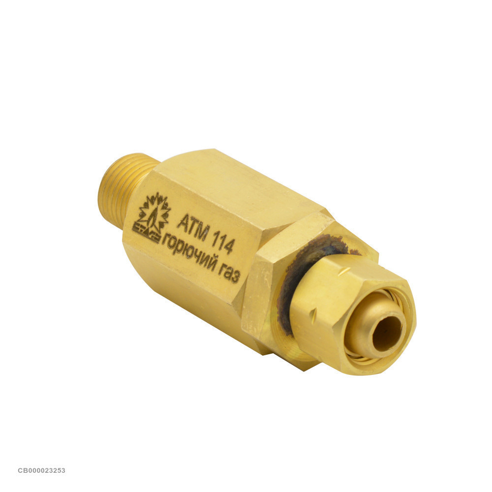 Клапан обратный металлургический НОРД-С АТМ 114, предотвращающий обратный поток газа и пламени при газопламенной обработке металлов. Можно использовать с резаками АТМ15 и АТМ128. Широко применяется в металлургической промышленности.