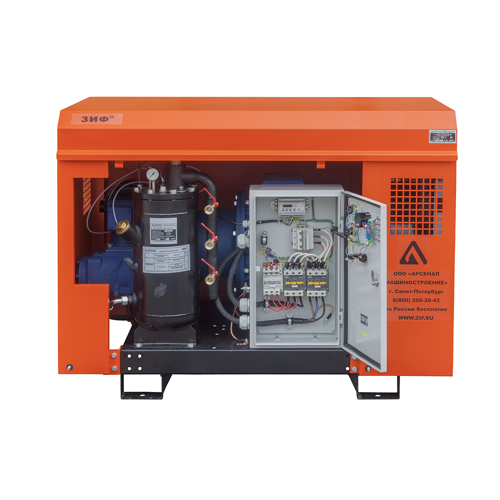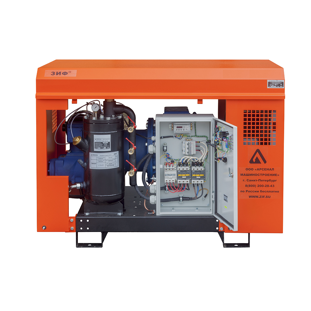 Электрические станции ЗИФ-СВЭ без кожуха могут быть полезны, когда размещение компрессора в производственном помещении по различным причинам невозможно или неудобно.