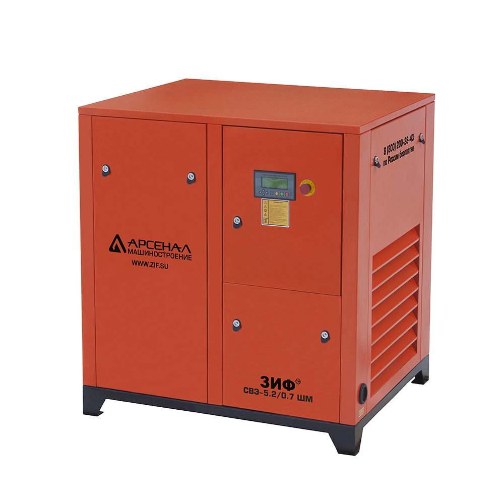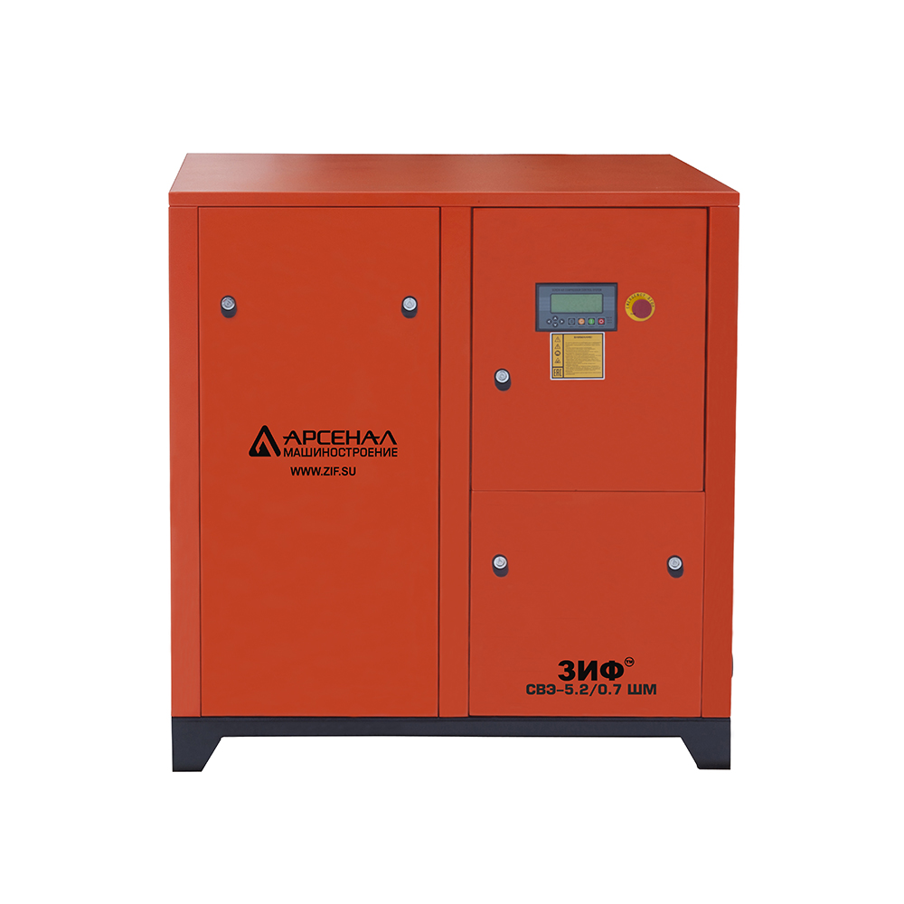 Винтовые электрические компрессорные установки ЗИФ-СВЭ серии ШМ (оснащены шумозащитным кожухом и микропроцессорным управлением) и ШМЧ (дополнительно установлен частотный преобразователь частоты вращения двигателя) служат для снабжения сжатым воздухом предприятий любого типа и размера.