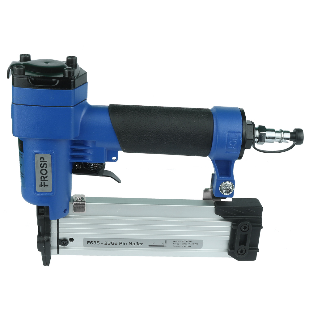 Отличительной особенностью данного микрошпилечника является незаметная фиксация крепежа, которая обеспечивает аккуратное и надежное крепление. Использование сжатого воздуха делает инструмент легким, а прорезиненная рукоятка делает использование пистолета максимально комфортным.