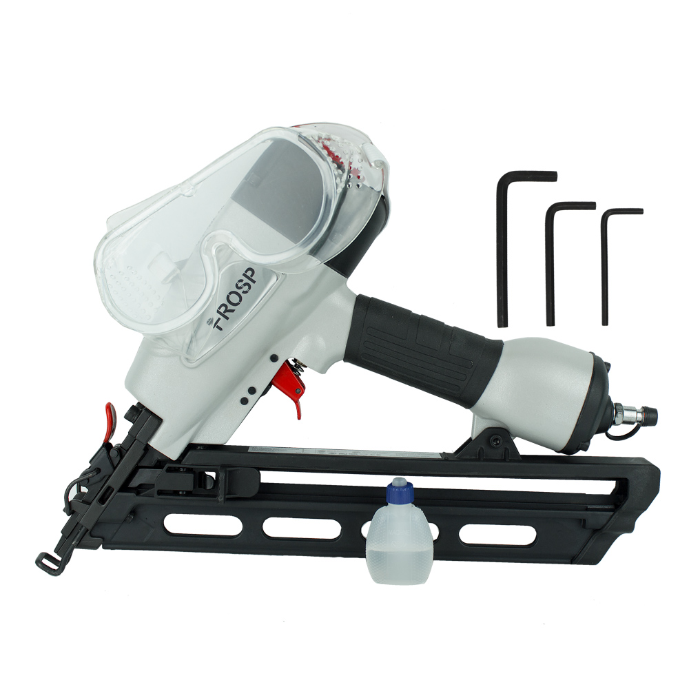 FROSP-6434 – реечный гвоздезабивной пистолет. Предназначен для ремонта и изготовления деревянных конструкций. Применяется для строительства, настила полов, создании мебели, каркасов, паллет, подиумов. Бьёт гвоздь длинной 32-64 мм, диаметром 1,8 мм с ёмкостью магазина - 100 гвоздей.